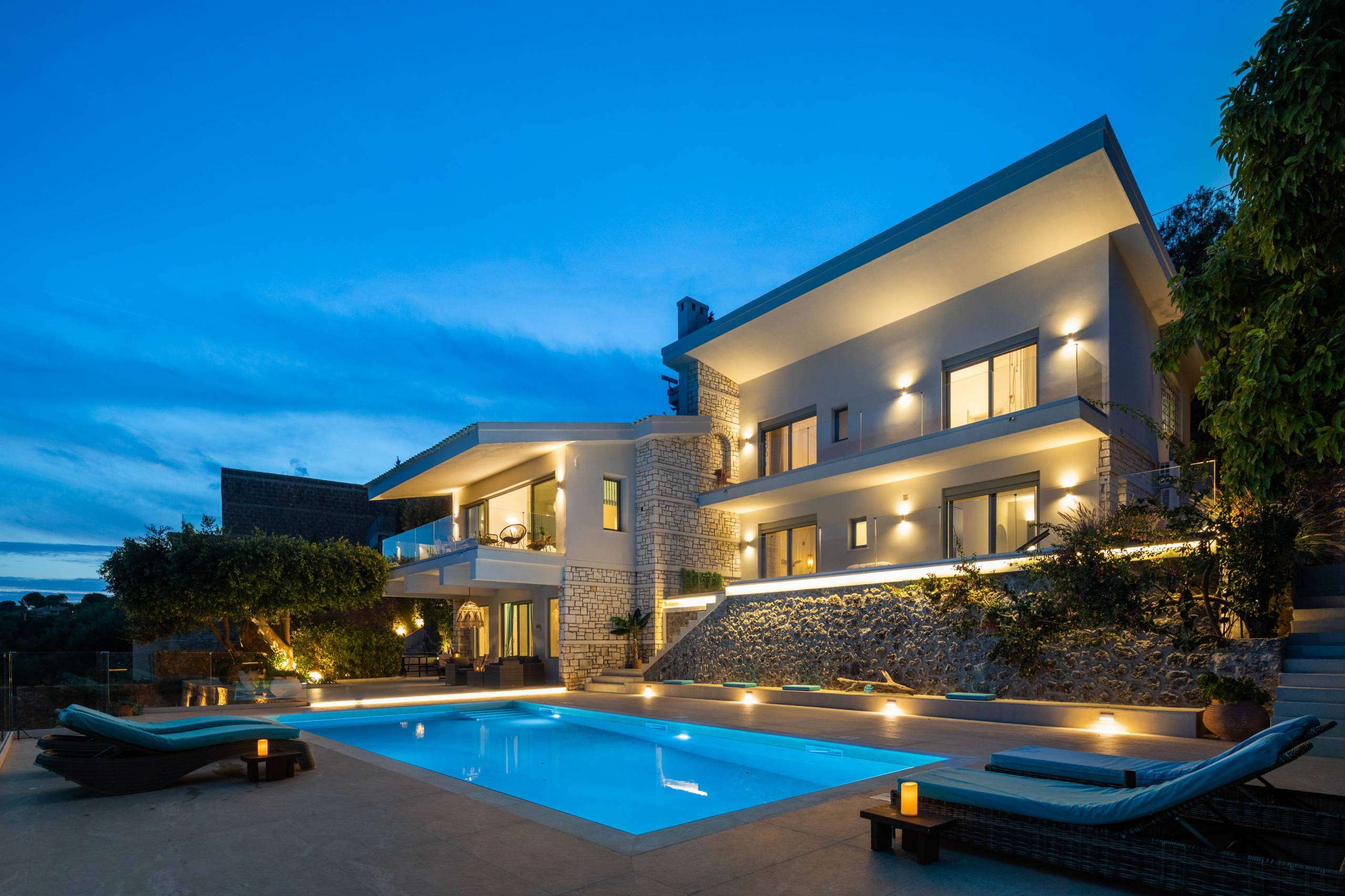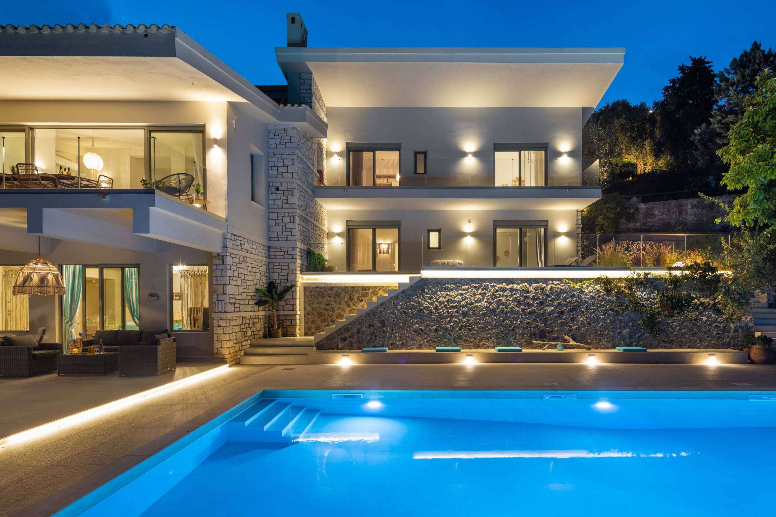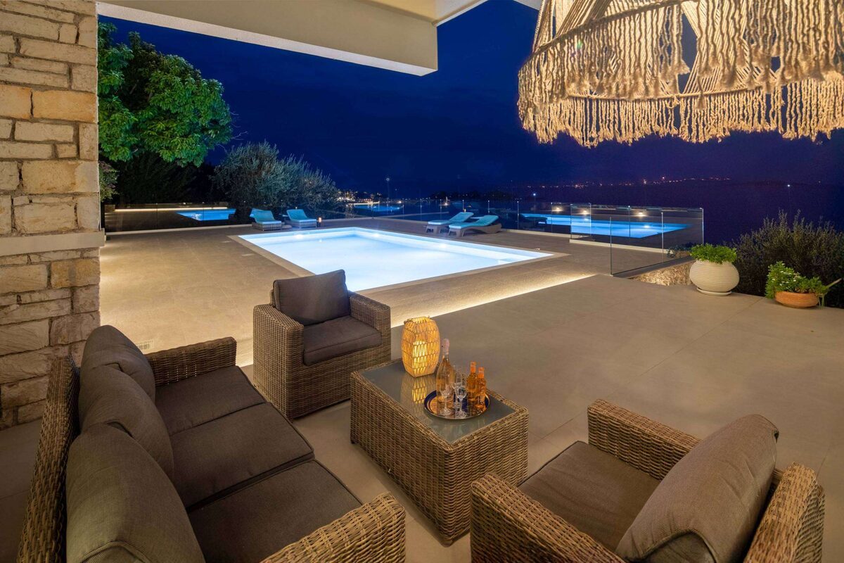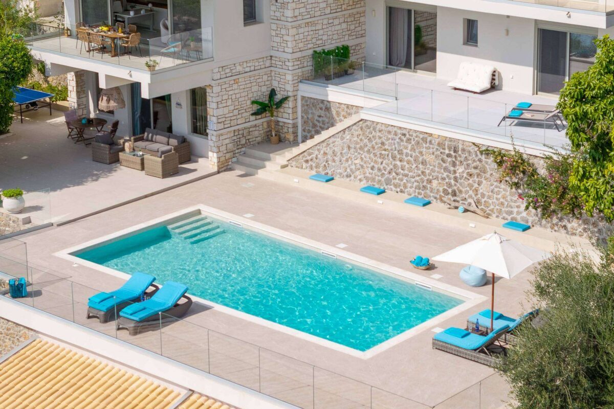 The luxurious pool at our villa is a centerpiece of elegance and relaxation, offering an unparalleled experience for our guests. Designed to harmonize with the natural beauty of Kommeno, the pool is filled with crystal-clear seawater, providing a refreshing and invigorating swim reminiscent of the pristine Ionian Sea.