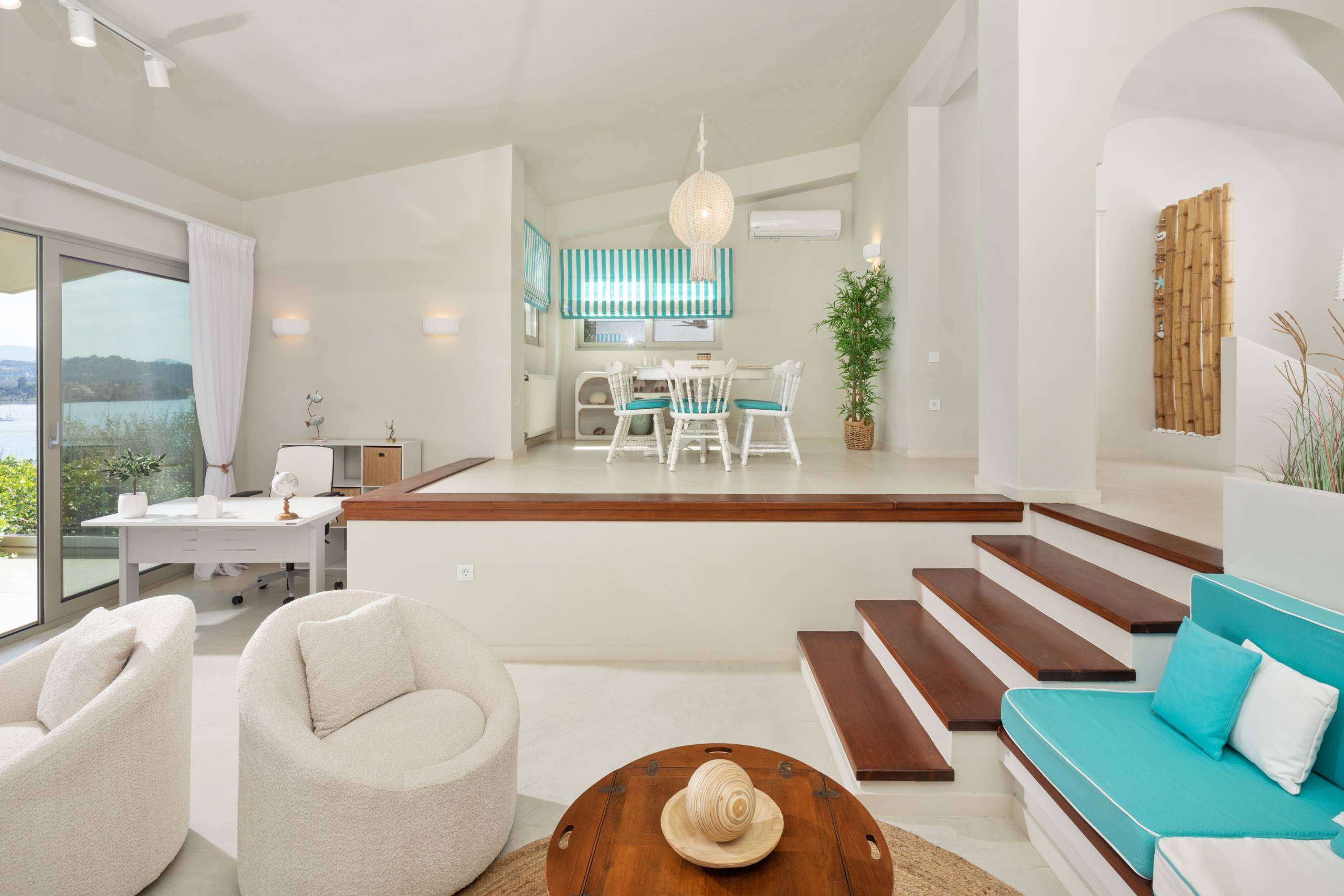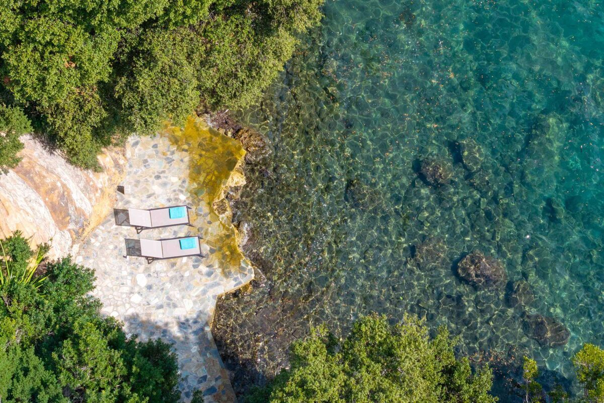 Adding to the villa’s allure is its private access to the sea. A short path leads directly from the property to the water’s edge, allowing guests to effortlessly transition from poolside relaxation to a dip in the Ionian Sea. This exclusive feature ensures privacy and convenience, making it easy to explore the clear waters, enjoy a morning swim, or go the distance in the open waters and get a great workout in.