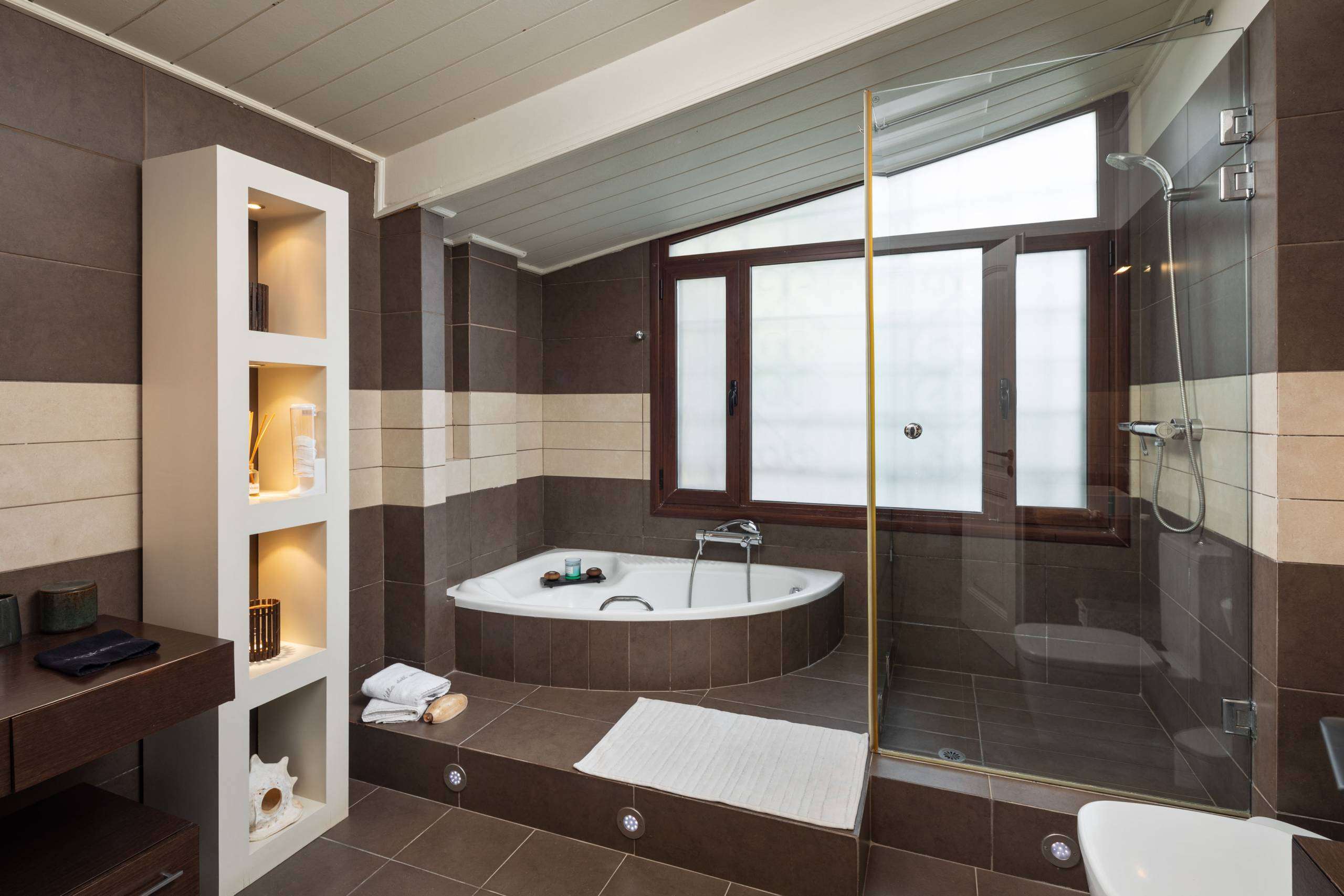 Located on the upper floor and features a spacious balcony with an exquisite sea view. The room is furnished with all new pieces, and the mattresses are designed to ensure a perfect night’s sleep. Decorated in serene white and beige tones, the room exudes a sense of zen and tranquility. The bathroom is generously sized, equipped with both a shower cabin and a large bathtub, providing a luxurious and relaxing experience.